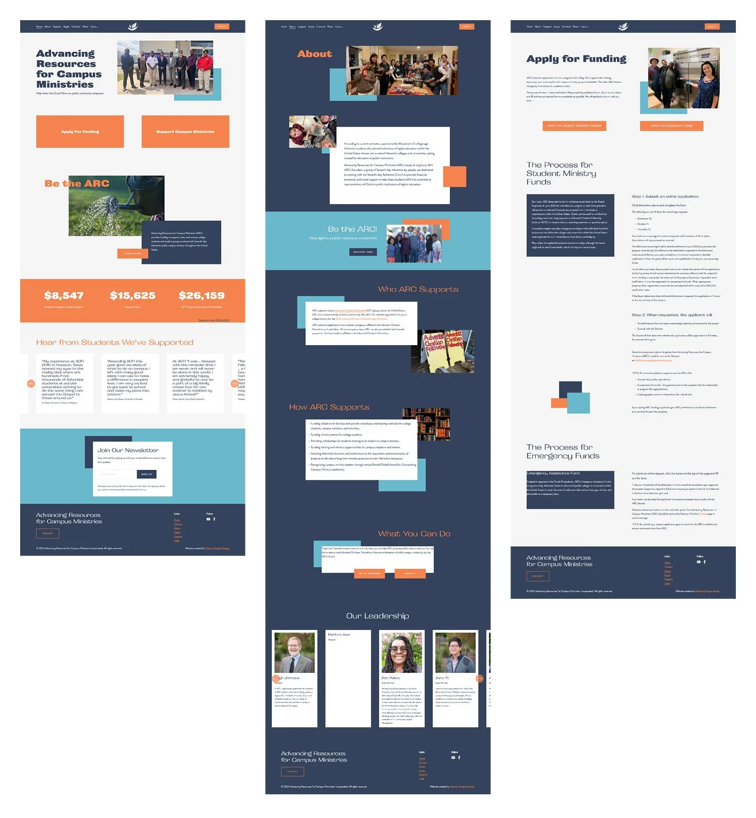 Advancing Resources for Campus Ministries (ARC) old website had issues displaying properly in all browsers, was out of date, and was challenging to navigate. Also, the team behind ARC was no longer able to make their own updates due to the complexities of it being built in WordPress.